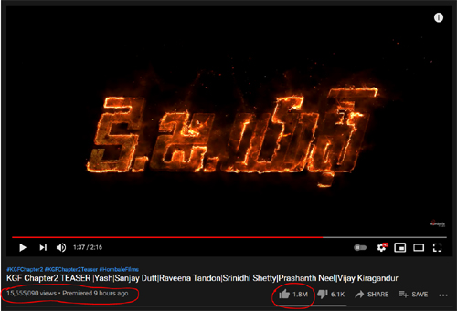 పక్కా మాస్ యాక్షన్ థ్రిల్లర్ గా తెరకెక్కిన ఈ భారీ పాన్ ఇండియన్ సినిమా టీజర్ ను మేకర్స్ యష్ పుట్టినరోజు సందర్భంగా కాస్త ముందే విడుదల చేసారు. అలా చేశారో లేదో ఈ సినిమా ఫ్యాన్స్ మాస్ హిస్టీరియా అంటే ఏంటో రుచి చూపించేశారు. సడెన్ గా రాత్రి 9 గంటల 29 నిమిషాల సమయంలో విడుదల కాగా కేవలం 79 నిమిషాల్లో 1 మిలియన్ లైక్స్ కొల్లగొట్టేసి ఏకంగా వరల్డ్ రికార్డ్ నే సెట్ చేసినట్టు తెలుస్తుంది.