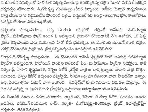 సెప్టెంబర్ 5న ‘కిరాక్’ విడుదల..