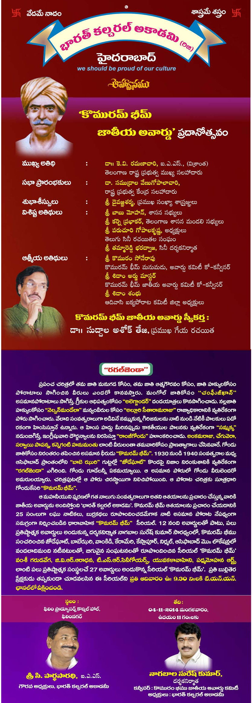 నవంబర్ 4న ‘కొమరం భీమ్’ జాతీయ అవార్డు ప్రధానోత్సవం