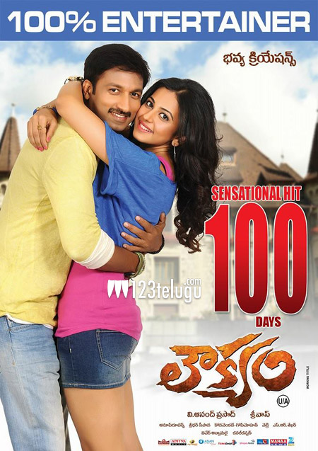 ఇటీవల కాలంలో ఒక సినిమా థియేటర్ లలో 100 రోజులు పూర్తిచేసుకుంది అంటే అది విశేషమనే చెప్పాలి. అయితే గోపీచంద్ నటించిన ‘లౌక్యం’ సినిమా ఈ ఫీట్ ని సాధించింది. కుటుంబ సంబంధాలకు చక్కని కామెడీని జతచేసి రొటీన్ డ్రామాకు సైతం మంచి హిట్ ని అందుకున్నారు