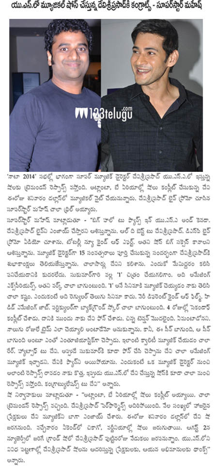దేవి శ్రీ ప్రసాద్ కి కంగ్రాట్స్ తెలిపిన మహేష్ బాబు