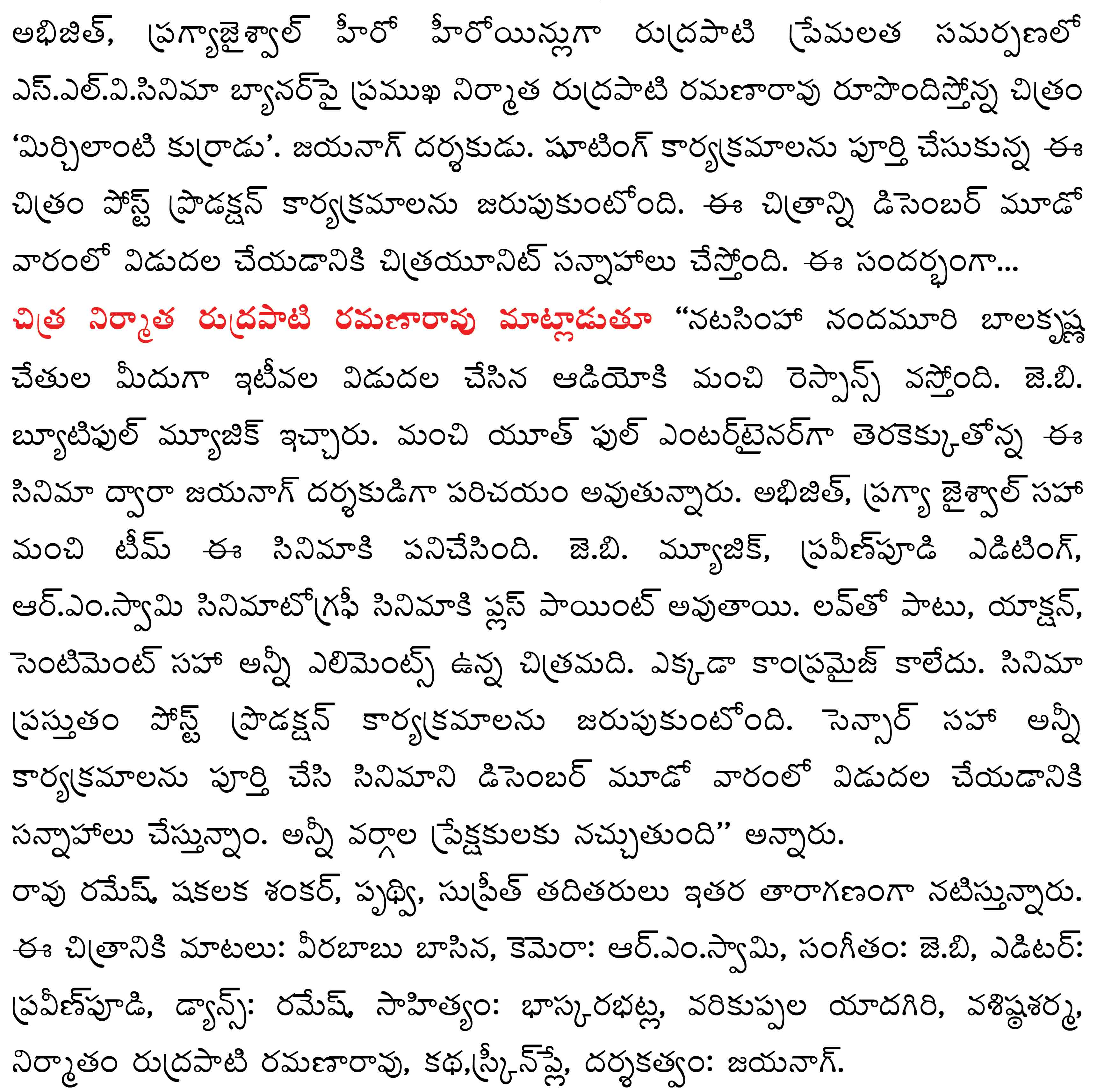 డిసెంబర్ మూడో వారంలో విడుదలకు సిద్దమవుతోన్న “మిర్చిలాంటి కుర్రాడు”
