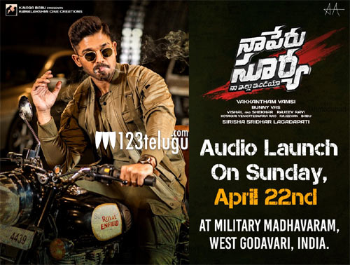 అల్లు అర్జున్ నటించిన ‘నా పేరు సూర్య’ చిత్రం విడుదల తేదీ దగ్గరపడుతుండటంతో చిత్ర యూనిట్ సినిమా ఆడియో వేడుకను నిర్వహించాలని నిర్ణయించారు. ఇంతకీ ఈ వేడుక ఎక్కడ అనుకుంటున్నారా.. పశ్చిమ గోదావరి జిల్లా తాడేపల్లిగూడెం మండలానికి చెందిన మిలిట్రీ మాధవరంలో జరగనుంది. ఈ గ్రామానికి ఒక ప్రత్యేక ఉంది. అదేమిటంటే ఈ గ్రామంలోని ప్రతి కుటుంబం నుండి కనీసం ఒక్కరైన సైన్యంలో ఉంటారు.