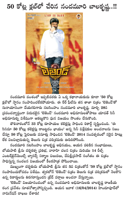 50 కోట్ల క్లబ్ లో నందమూరి బాలకృష్ణ ‘లెజెండ్’