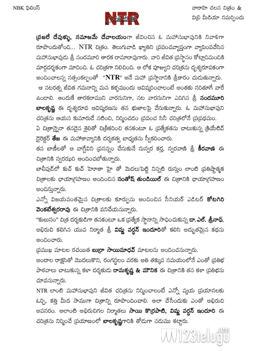 ఎన్టీఆర్ బయోపిక్ మూవీ వివరాలు