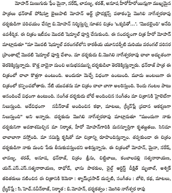 మొదటి ష్కడుల్ పుర్తి చేసుకున్న’ఒక్కడితో మొదలైంది’