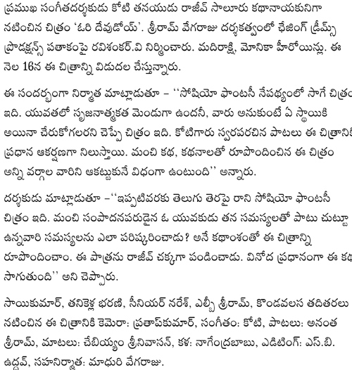 ఈనెల 16న విడుదల కానున్న ఓరిదేవుడోయ్