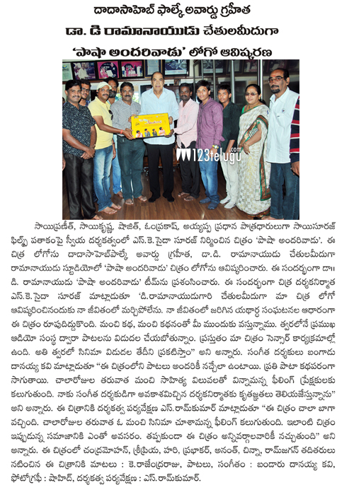 “పాషా అందరివాడు” చిత్ర లోగోను ఆవిష్కరించిన డా. డి. రామానాయుడు