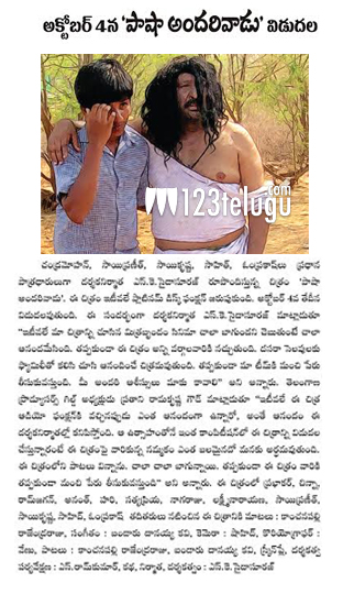 అక్టోబర్ 4న ‘పాషా అందరివాడు’ విడుదల..!
