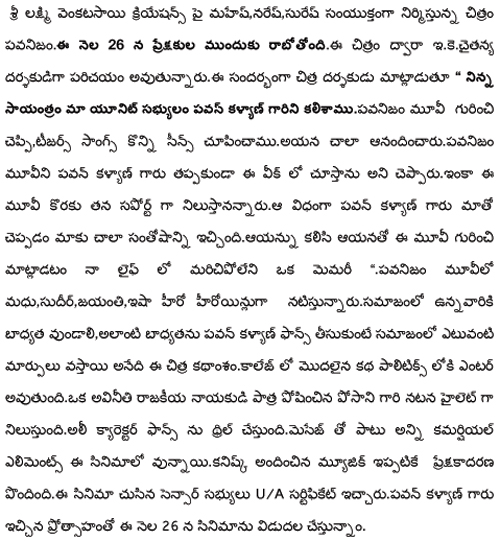 ‘పవనిజం’ టీంకు అల్ ది బెస్ట్ చెప్పిన పవన్ కళ్యాణ్