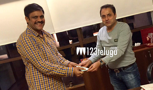 నందమూరి బాలకృష్ణ ప్రస్తుతం తన 98వ సినిమా షూటింగ్ లో బిజీ కానున్నాడు. ఈ సినిమాని ఫిబ్రవరిలో ఫినిష్ చేసి తన 99వ సినిమాని కూడా ఇదే నెలలో మొదలు పెట్టనున్నాడు. టాలీవుడ్ మోస్ట్ వాంటెడ్ రైటర్స్ అయిన గోపి మోహన్ – కోన వెంకట్ కలిసి కథ అందించిన ఈ సినిమాకి శ్రీవాస్ దర్శకత్వం వహించనున్నాడు. ఈ సినిమాని ఈరోస్ ఇంటర్నేషనల్ వారు నిర్మించనున్నారని ఇది వరకే తెలియజేశాం. తాజాగా ఈరోస్ సిఈఓ సునీల్ లుల్ల ఈ సినిమా కోసం ఒక చెక్ ని శ్రీ వాస్ కి అందించాడు. ఆ ఫొటోనే మేము మీకు పైన అందించాం. బాలకృష్ణ 99వ సినిమా రెగ్యులర్ షూటింగ్ మార్చి నుండి ప్రారంభం కానుంది.