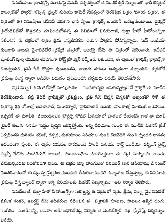 పోస్ట్ ప్రొడక్షన్ వర్క్ లో ‘మాయ చిత్రం’.