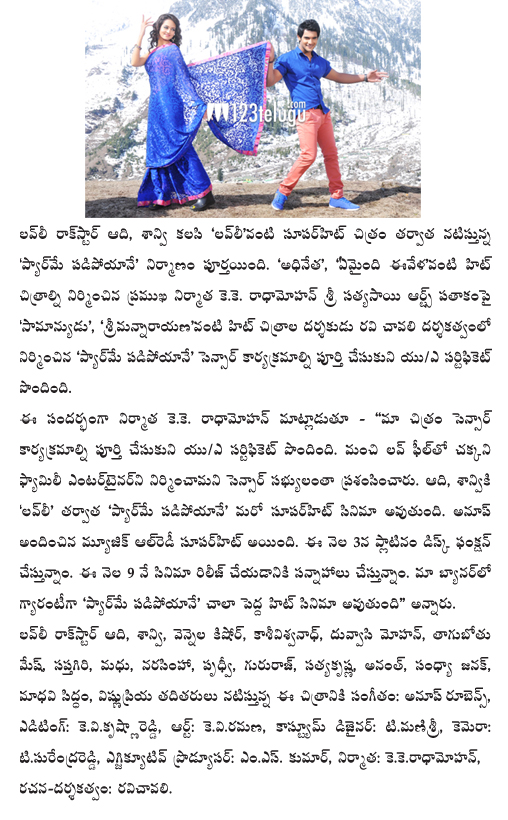 ‘యు/ఏ’ పొందిన ప్యార్ మే పడిపోయానే