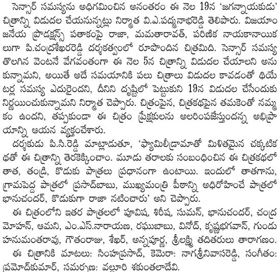 19న జగన్నాయకుడిగా రానున్న రాజా