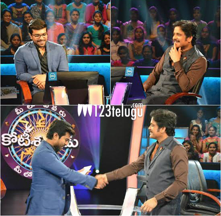 బుల్లితెరపై సంచలనాలు సృష్టిస్తూ.. వీక్షకుల ఆదరాభిమానాలు సొంతం చేసుకున్న కార్యక్రమం ‘మీలో ఎవరు కోటీశ్వరుడు’. మొదటి సీజన్ అందించిన ఉత్సాహంతో కింగ్ నాగార్జున రెండవ సీజన్ మొదలుపెట్టారు. ఈ కార్యక్రమం ఘన విజయం సాదించడంలో తారల తళుకు బెళుకులు కూడా ఓ కారణమే. ఇది గమనించిన నిర్వాహకులు రెండో సీజన్లో నటీనటులకు పెద్ద పీట వేశారు. ఇప్పటికే అనుష్క, సమంత, రకుల్ ప్రీత్ సింగ్, వరుణ్ తేజ్, పూజా హెడ్గే తదితరులు పాల్గొన్నారు. ఇక, రామ్ చరణ్ వంతు వచ్చింది.