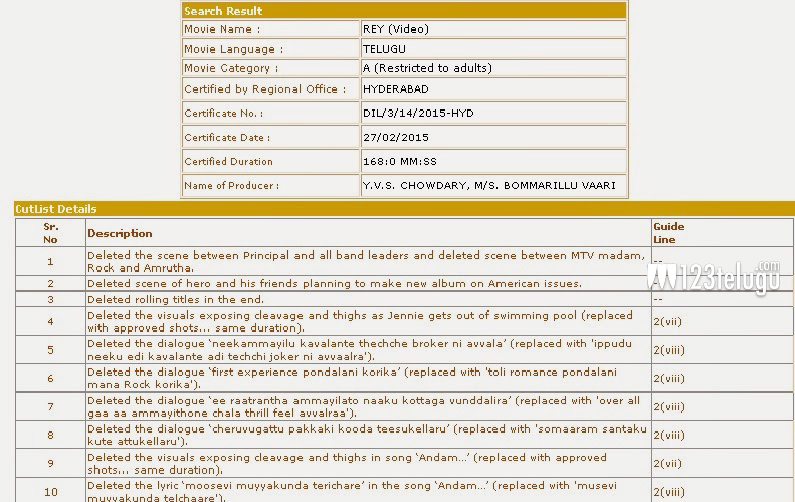 రేయ్ సెన్సార్ : ‘ఏ’ సర్టిఫికెట్, 41కట్స్!