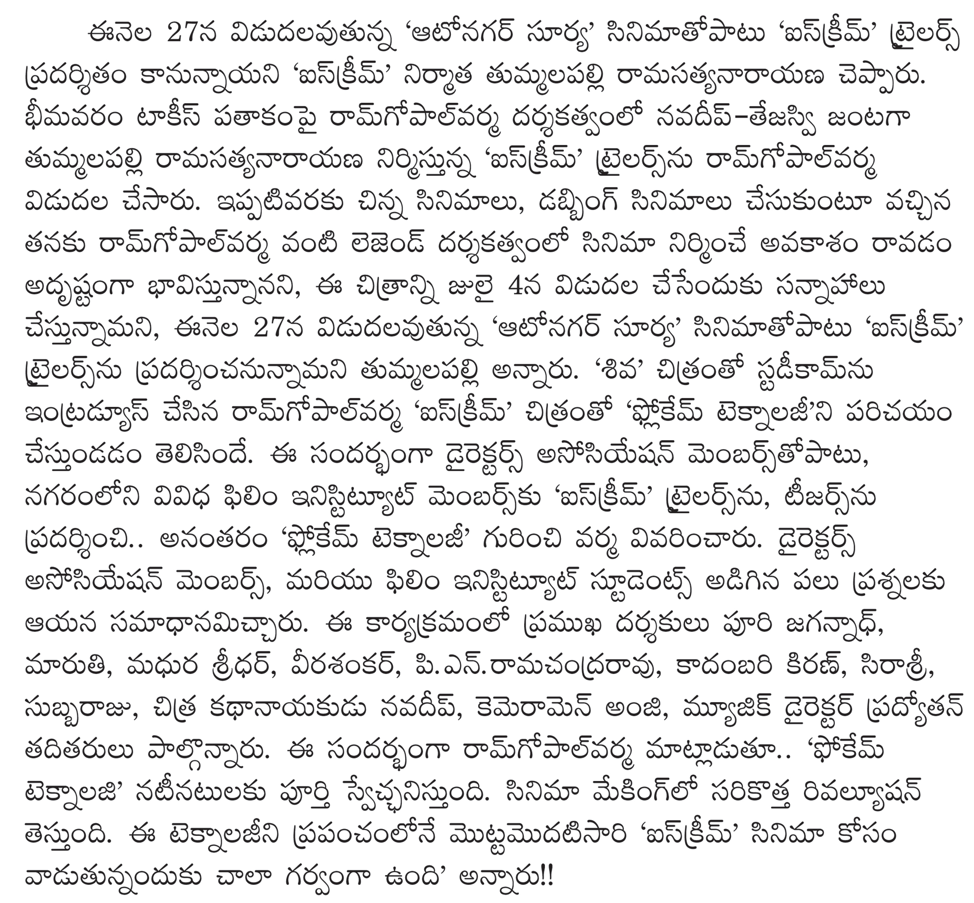 జూలై 4న వర్మ – నవదీప్ ల ‘ఐస్ క్రీమ్’