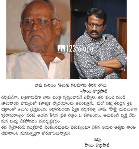 బాపు మృతికి సంతాపం తెలిపిన సాయి కొర్రపాటి