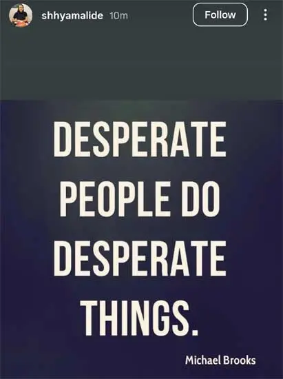 ఇదే సమయంలో శ్యామాలి ఈ పోస్ట్ పెట్టడంతో చర్చ మొదలైంది. సమంత సమయం దొరికినప్పుడల్లా ఈశా షౌండేషన్కు వెళ్లే విషయం తెలిసిందే. దాని వ్యవస్థాపకుడు, ఆధ్యాత్మిక గురువు సద్గురు జగ్గీ వాసుదేవ్ నిర్వహించే కార్యక్రమాల్లో ఆమె తరచూ పాల్గొంటూ ఉంటుంది. కాబట్టి, ఆ ప్రదేశంలోనే తన వివాహం చేసుకోనున్నారని తెలుస్తోంది. మొత్తానికి సమంత – రాజ్ నిడిమోరు డేటింగ్లో ఉన్నట్లు కొంతకాలంగా వార్తలు వస్తున్నాయి. ఇప్పుడు ఏకంగా పెళ్లి అంటూ పుకార్లు వినిపిస్తున్నాయి.