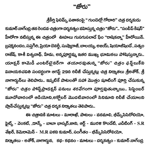 సందీప్ కిషన్, రాషి ఖన్నాల ‘జోరు’ చిత్రం విశేషాలు