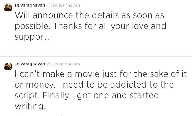 ‘కేవలం డబ్బు కోసమో… మరో అంశం కోసమో నేను సినిమాలు తీయలేను. స్టొరీ లైన్, స్క్రిప్ట్ నాకు బాగా నచ్చాలి. ప్రస్తుతం నేనొక కథ రాస్తున్నాను. త్వరలో సినిమాకి సంబందించిన మరిన్ని వివరాలు వెల్లడిస్తాను. థాంక్స్ ఫర్ సపోర్ట్ & లవ్’ అని సెల్వ రాఘవన్ ట్వీట్ చేశారు.