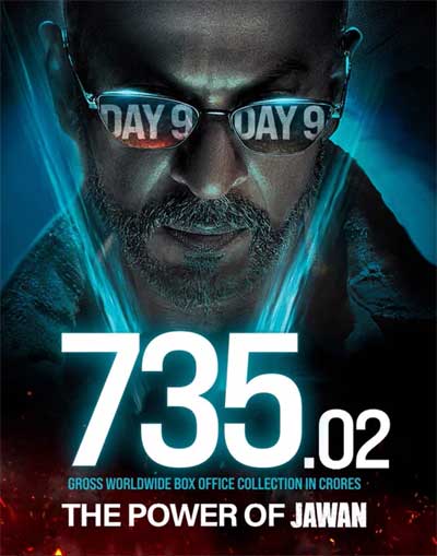 ఇక ఇప్పటికే అనేక ప్రాంతాల్లో మంచి కలెక్షన్ అందుకుంటున్న జవాన్ మొత్తంగా గడచిన 9 రోజుల్లో ప్రపంచవ్యాప్తంగా రూ. 735.02 కోట్ల గ్రాస్ ని సొంతం చేసుకున్నట్లు మేకర్స్ కొద్దిసేపటి క్రితం అఫీషియల్ గా ప్రకటించారు. ఇటీవల షారుఖ్ నటించిన పఠాన్ మూవీ రూ. 1000 కోట్లు పైగా కలెక్షన్ అందుకోగా జవాన్ ఫైనల్ గా ఎంతమేర రాబడుతుందో చూడాలని పలువురు షారుఖ్ ఫ్యాన్స్ తో పాటు ఆడియన్స్ సైతం ఆసక్తికరంగా ఎదురు చూస్తున్నారు.