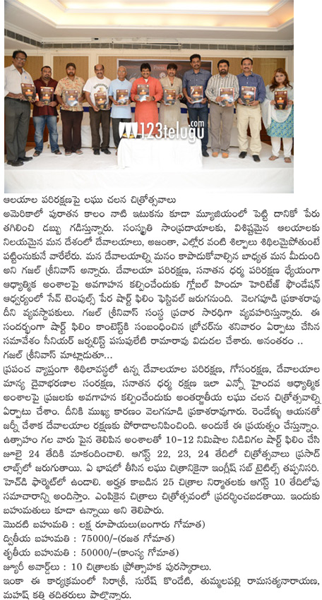 ఆలయాల పరిరక్షణపై లఘు చలన చిత్రోత్సవాలు