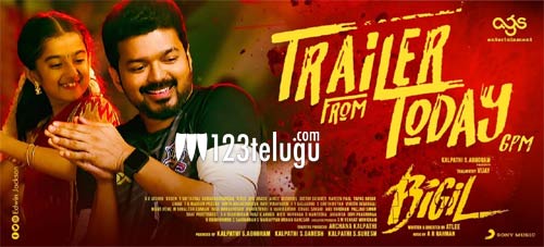 తలపతి విజయ్ ట్రైలర్ విడుదల డేట్ ప్రకటించినప్పటినుండి విజయ్ అభిమానులే కాకుండా, సినీ ప్రేమికులు కూడా ఆసక్తిగా ఎదురు చూస్తున్నారు. ఇంత ఆసక్తి కలగడానికి దర్శకుడు అట్లీ కావడంతో పాటు, విజయ్ ఈ మూవీలో భిన్న గెటప్స్ లో కనిపించడమే. లేడీ ఫుట్ బాల్ జట్టు కోచ్ పాత్ర అలాగే మరో అవుట్ అండ్ మాస్ రోల్ ఆయన చేస్తున్నారు. ఇక నేడు ఈ మూవీ ట్రైలర్ విడుదుల కానుంది.