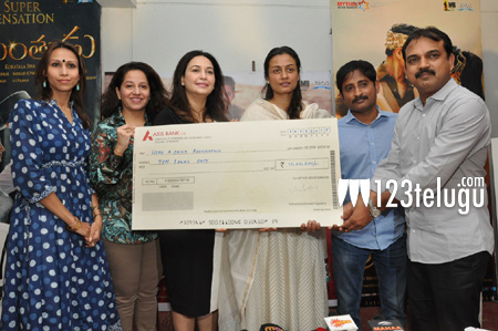 ఇక ఇదే పంథాను కొనసాగిస్తూ ‘శ్రీమంతుడు’ టీమ్ సామాజిక సేవలతో అందరి ప్రశంసలూ పొందుతోన్న ‘హీల్ ఏ చైల్డ్’ అనే సంస్థకు 10 లక్షల రూపాయలను విరాళంగా ఇచ్చింది. ఈ ఉదయం దీనికోసమే ప్రత్యేకంగా ఏర్పాటు చేసిన కార్యక్రమంలో హీల్ ఏ చైల్డ్ సంస్థకు శ్రీమంతుడు టీమ్ 10 లక్షల రూపాయల చెక్ అందజేసింది. ఈ సందర్భంగా దర్శకుడు కొరటాల శివ మాట్లాడుతూ.. శ్రీమంతుడు పంచిన సందేశం అంతటా కొనసాగాలని, ఆ క్రమంలోనే ఇప్పుడీ ఆలోచన చేశామని తెలిపారు. ఇక ఇదే సందర్భంగా బసవతారకం క్యాన్సర్ ఆస్పత్రికి కూడా శ్రీమంతుడు టీమ్ 5 లక్షల రూపాయల చెక్ అందజేసింది. ఈ కార్యక్రమంలో దర్శకుడు కొరటాల శివ, మహేష్ భార్య నమ్రత శిరోధ్కర్, మైత్రీ మూవీ మేకర్స్ నిర్మాతలు పాల్గొన్నారు.