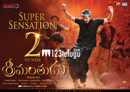 సెకండ్ వీకెండ్ లో కూడా శ్రీమంతుడు సినిమాకి సూపర్బ్ కలెక్షన్స్ నమోదయినట్లు ట్రేడ్ వర్గాలు చెబుతున్నాయి. సెకండ్ వీకెండ్ లో వరల్డ్ వైడ్ గా కలుపుకొని సుమారు 10 కోట్లు కలెక్ట్ చేసినట్లు సమాచారం. ఈ సినిమా విషయంలో డిస్ట్రిబ్యూటర్స్, బయ్యర్స్ కూడా చాలా హ్యాపీగా ఉంది. సెకండ్ వీకెండ్ లో కూడా మహేష్ బాబు అండ్ టీం చాలా బాగా సినిమాని ప్రమోట్ చెయ్యడం కూడా సినిమాని బాగా హెల్ప్ అయ్యింది. కొరటాల శివ ఓ సోషల్ మెసేజ్ ఇంత కమర్షియల్ గా డీల్ చేయడంతో అతనికి ఎక్కువగా ప్రశంశలు దక్కాయి. మహేష్ బాబు సరసన మొదటిసారి శృతి హాసన్ జోడీ కట్టిన ఈ సినిమాలో జగపతి బాబు, రాజేంద్ర ప్రసాద్, సుకన్య, రాహుల్ రవీంద్రన్ లు ముఖ్య పాత్రలు పోషించారు. ఈ సినిమాతో నిర్మాతలుగా మారిన మైత్రి మూవీ మేకర్స్ వారు శ్రీమంతుడు సక్సెస్ తో చాలా హ్యాపీగా ఉన్నారు.