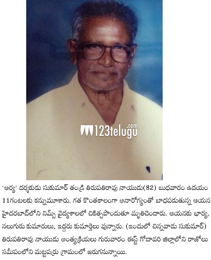 డైరెక్టర్ సుకుమార్ కి పితృ వియోగం
