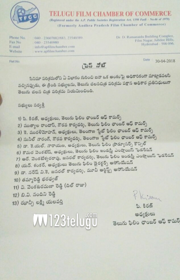 అందుకే ఇలాంటి పరిణామాలు మళ్ళీ మళ్ళీ చోటు చేసుకోకుండా ఉండేందుకు పరిశ్రమలోని పెద్దలందరూ కలిసి వివిధ కొంతమంది సభ్యులతో కూడిన ఒక కమిటీని ఏర్పాటు చేశారు. ఈ కమిటీలో ఇండస్ట్రీలోని పలు అసోషియేషన్ల సభ్యులకు స్థానం కల్పించారు.