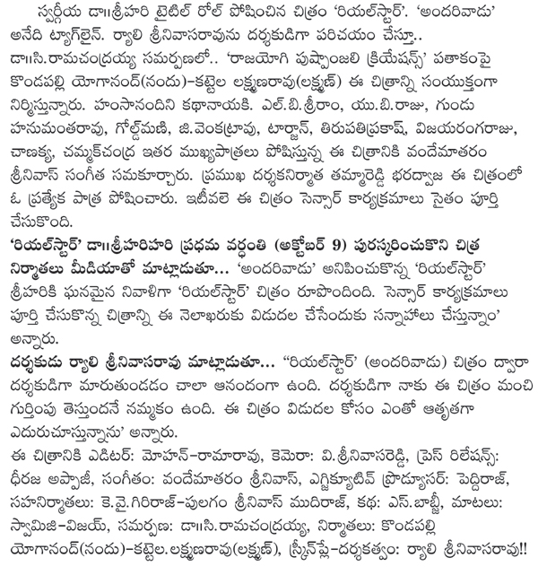ఈ నెలాఖరున రానున్న రియల్ స్టార్