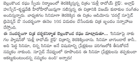 ఈ నెల 10న ‘మళ్ళీ రాదోయ్ లైఫ్’ ఆడియో