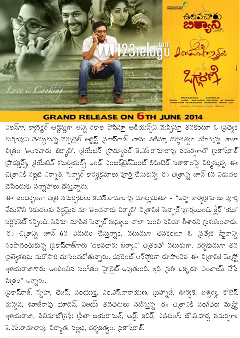 జూన్ 6న విడుదలకానున్న ఉలవచారు బిర్యాని