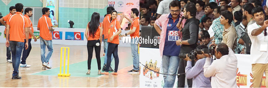 విక్టరీ వెంకటేష్, మెగా పవర్ స్టార్ రామ్ చరణ్ టీంల మధ్య జరిగిన రెండవ క్రికెట్ మ్యాచ్ లో ….. టీం విజయం సాధించింది. టాస్ నెగ్గిన వెంకటేష్ టీం మొదట బ్యాటింగ్ ఎంచుకుంది. 6 ఓవర్లలో 7 వికెట్ల కోల్పోయి 69 పరుగులు చేసింది. రామ్ చరణ్ టీం 6 ఓవర్లలో కేవలం పరుగులు 56 మాత్రమే చేసింది. 14 పరుగుల తేడాతో వెంకటేష్ టీం విక్టరీ సాధించింది. ఈ మ్యాచ్ లో రామ్ చరణ్ మూడు క్యాచ్ లు పట్టడంతో పాటు ఒక స్టంప్ అవుట్ చేయడం విశేషం.