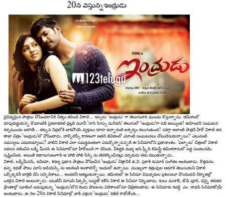ఈ నెల 20న రానున్న విశాల్ ‘ఇంద్రుడు’