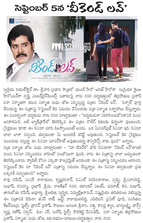 సెప్టెంబర్ 5న విడుదల కానున్న ‘వీకెండ్ లవ్’