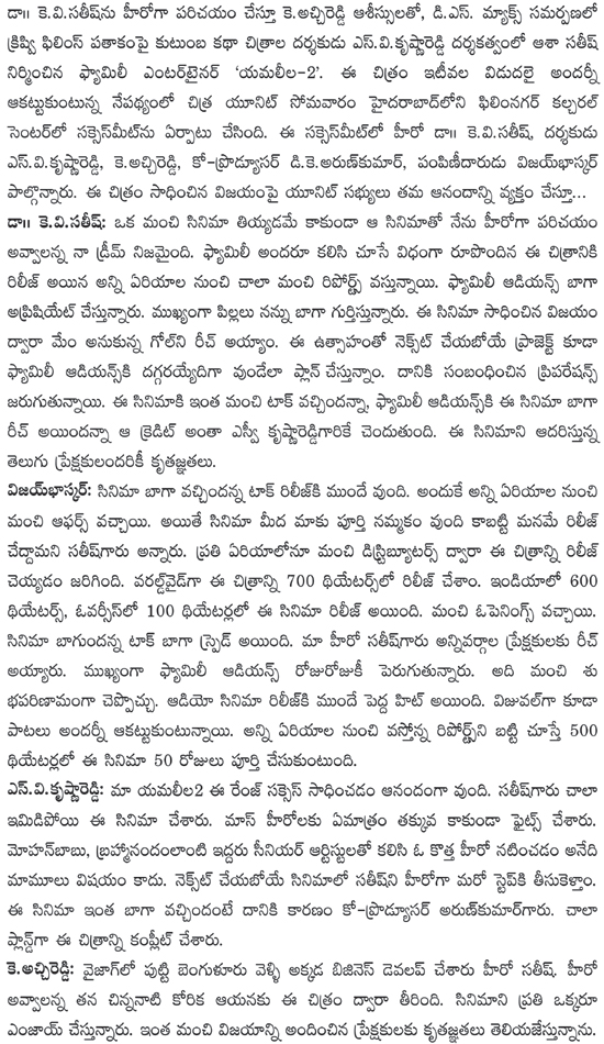 ‘యమలీల 2’ సక్సెస్ మీట్ విశేషాలు